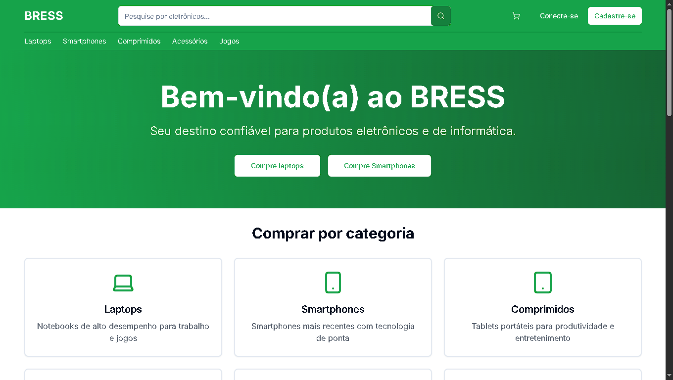 Loja virtual completa de eletrônicos e informática com categorias, carrinho e sistema de pagamentos